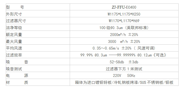 ZJ-FFU-EC400型號FFU技術參數